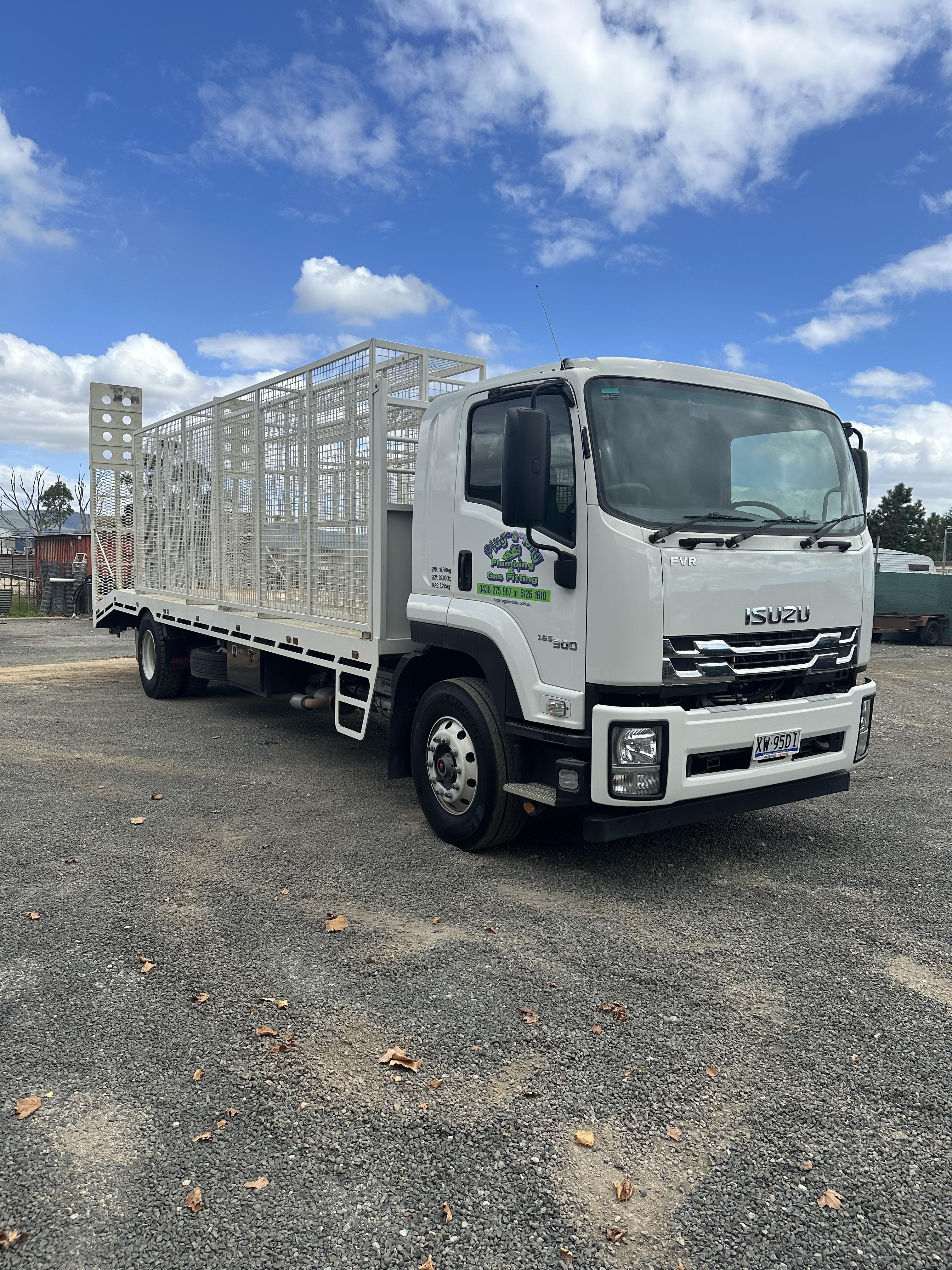 8000mm long x 4250mm wide beavertail tray. 3x under-tray tool boxes. Reverse camera. Hydraulic ramps. Custom powder coated pipe/fittings racks (suitable for plumber/drainer). 11,700 KLMS. Purchased brand new Oct 2022 from Geelong Isuzu - only selling due to downsized business.