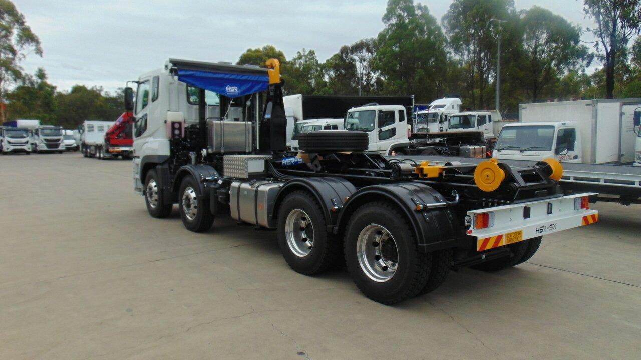 2024 Fuso FS76 8x4 460 Shogun White Hooklift & Bi Fold 10.8l 8x4 - Note: Plus on road costs. Shogun 460hp 8x4, 12 speed AMT, Ful suite of safety features, Auto lights and wipers, Fitted with a 20t Hook Lift Arctic Head, Live drive PTO, Power tarp system, Single Beacon, Worklights.. Ready to work. Call the new Fuso sales team today.