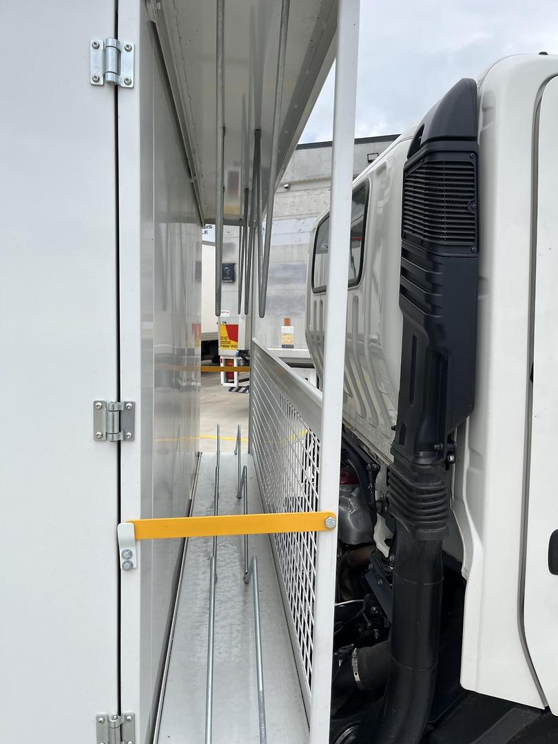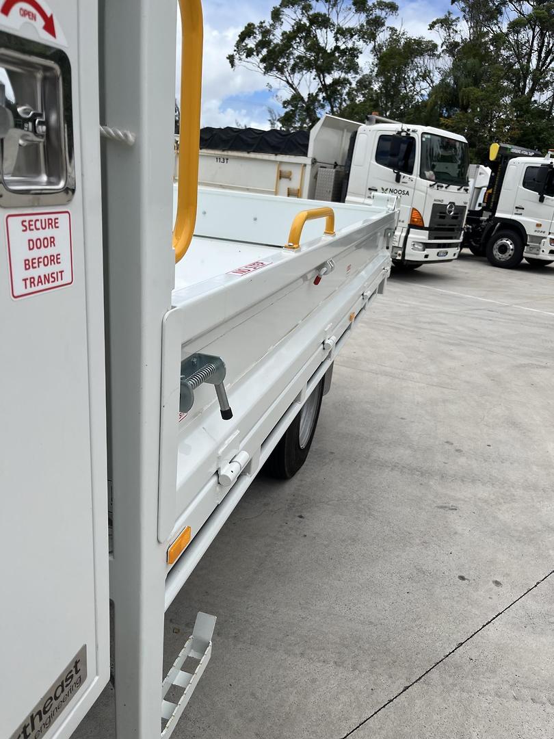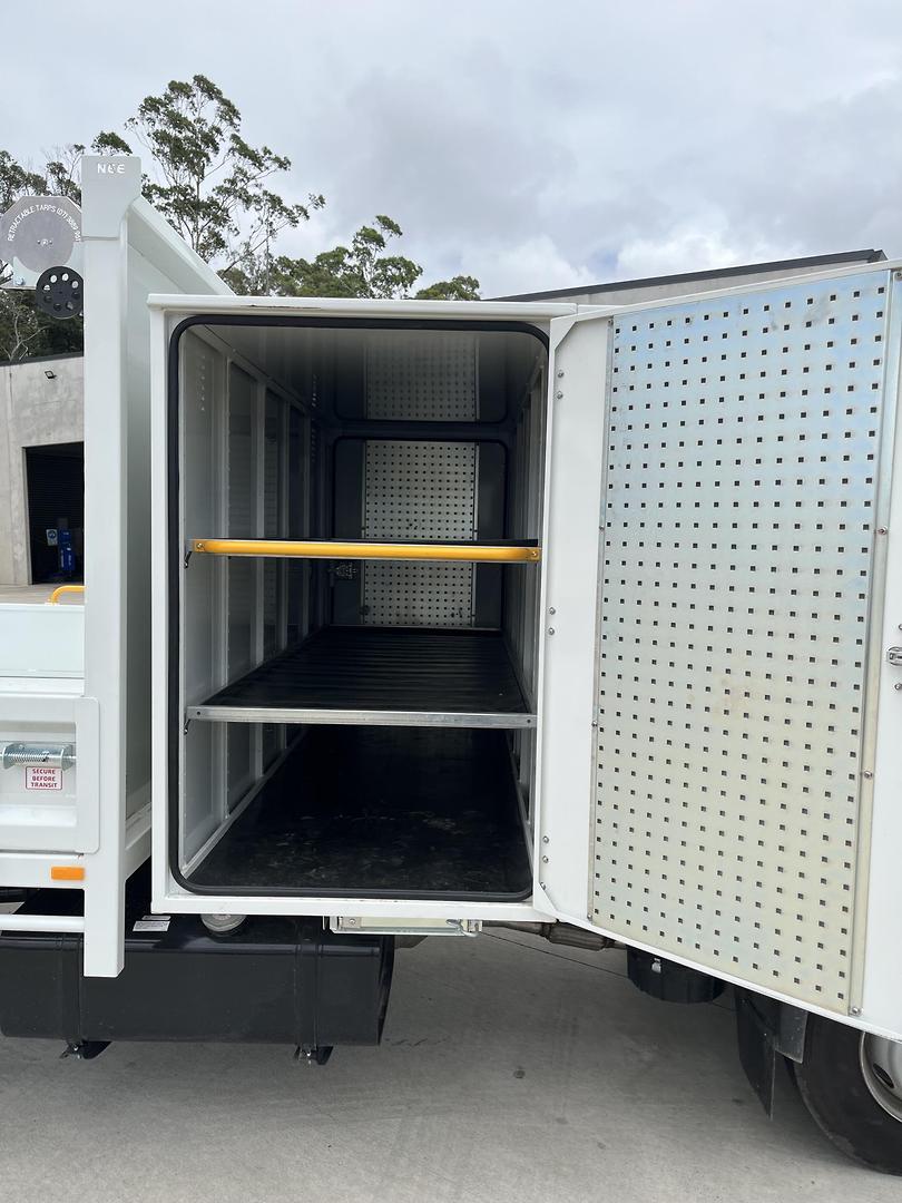 This is a brand-new build by Northeast Engineering and ready to roll. Fitted with Service Tipper body and full 2400 wide storage cabinets as well as signage storage in front.