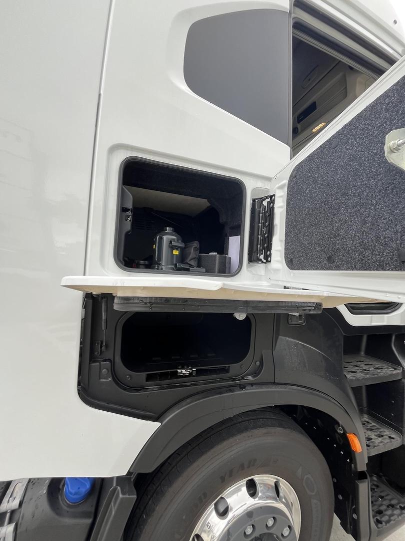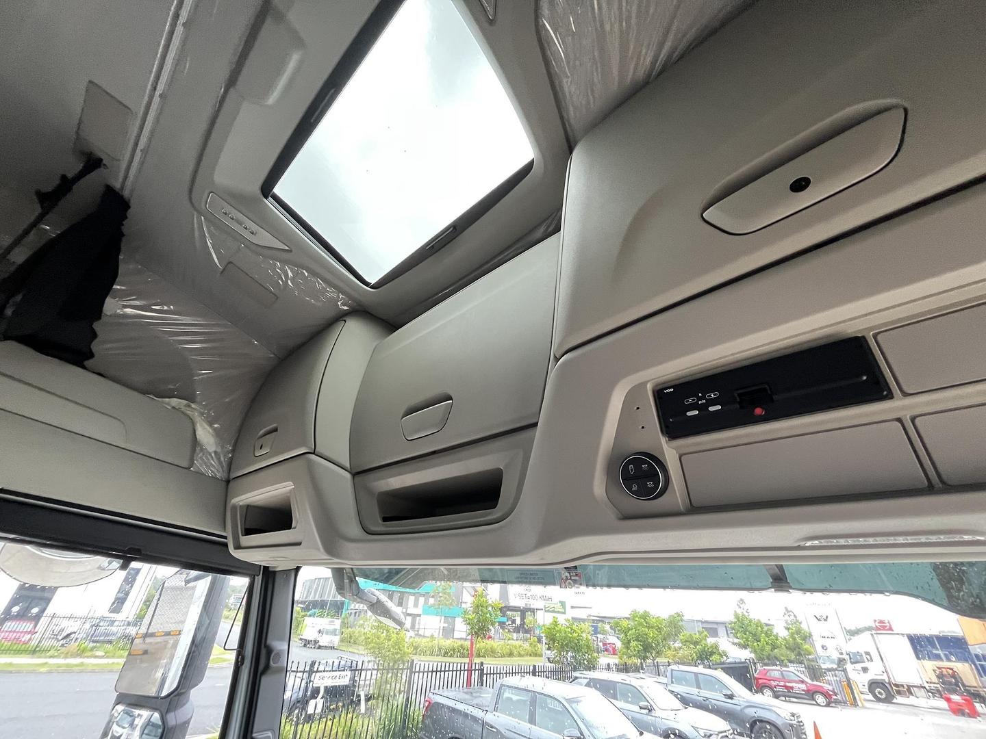 High 2150mm internal roof with cupboards,16 speed auto and 4 reverse gears. Dual sleeper bunks or more storage, Fridge, Cruise and safety features, Leather seats and steering wheel. A very roomy cab, Comfort, Functionality and storage. We can organise your custom fit out and accessories as well.