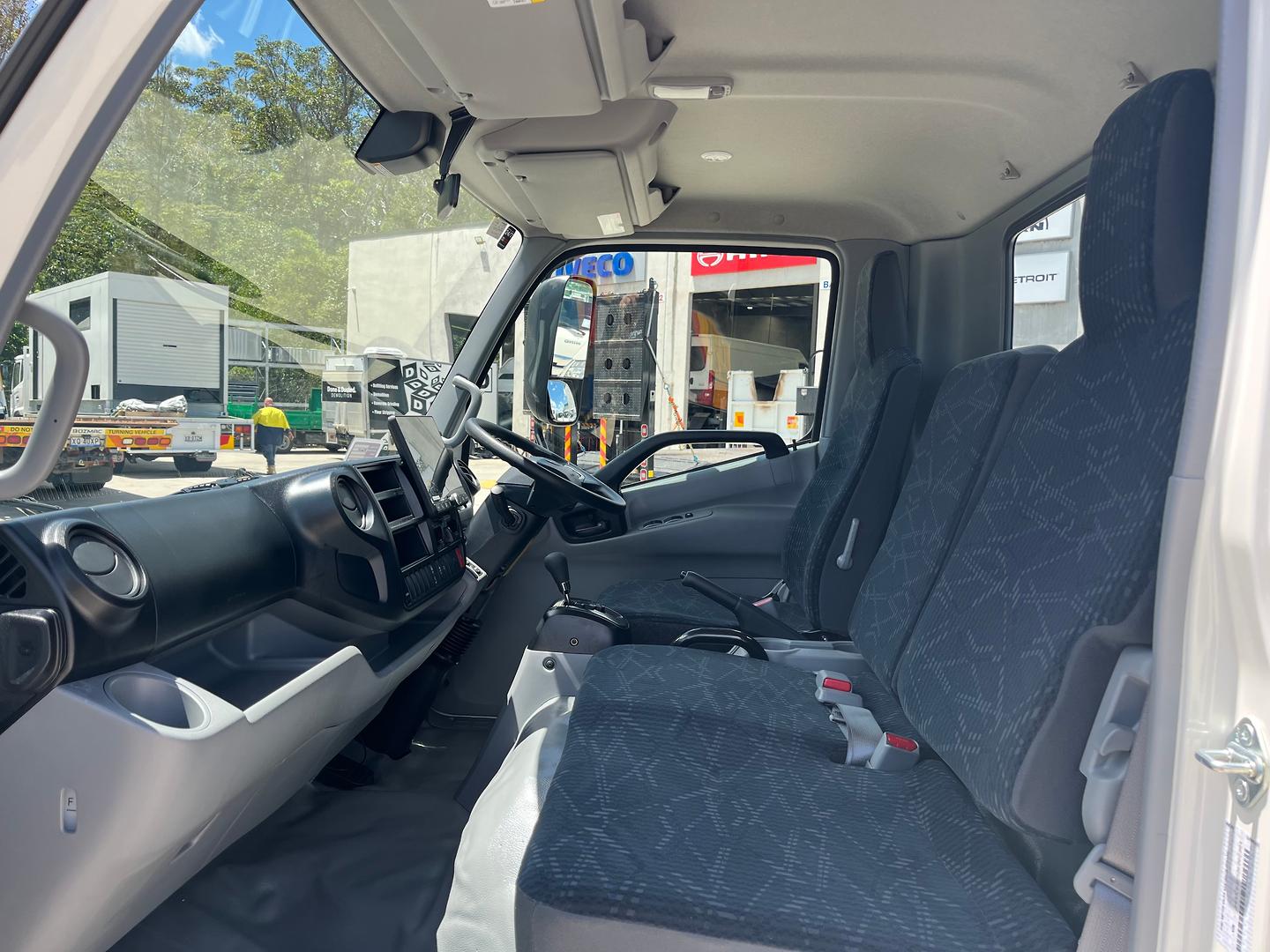 This Hino 616 sits on a 3430mm wheelbase and has a 150hp turbo diesel 4-cylinder engine combined with a proper automatic 6 speed transmission.
