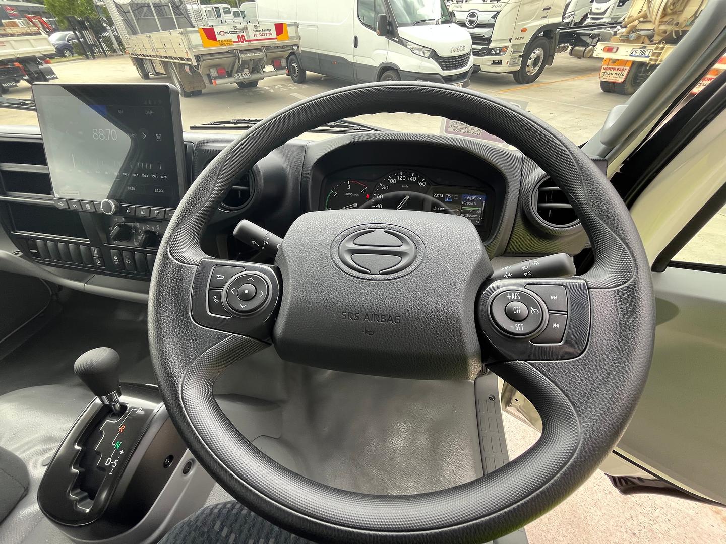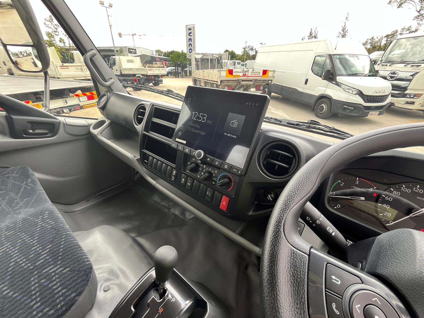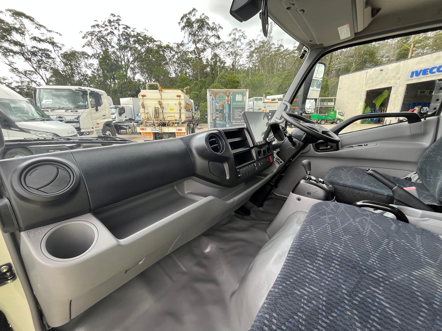 This Hino 616 sits on a 3430mm wheelbase and has a 150hp turbo diesel 4-cylinder engine combined with a proper automatic 6 speed transmission.