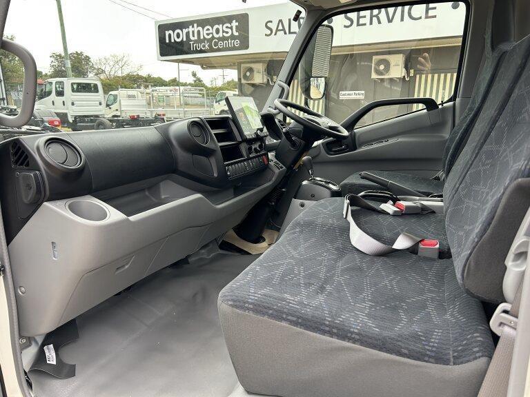 This Hino 616 sits on a 3430mm wheelbase and has a 150hp turbo diesel 4-cylinder engine combined with a proper automatic 6 speed transmission.
