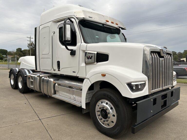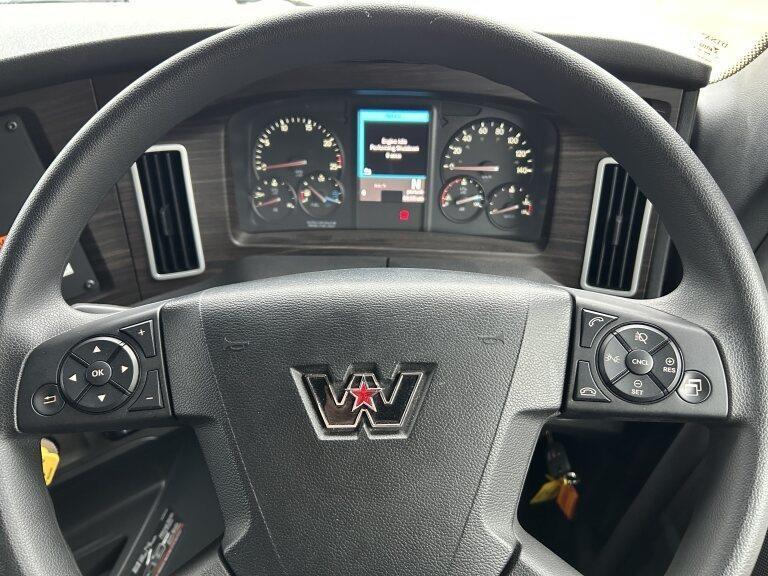 49X long bonnet with 48" mid roof sleeper, Detroit DD16 600hp @ 2050lb/ft, 12 speed automated transmission, Meritor RT46-160GP diffs , 1820lts fuel, Jost fixed turntable, alloy walk plate, Plastic drive guards and UHF radio