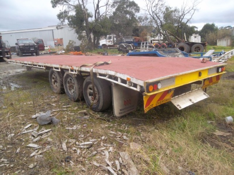Unknown Tag Tailer. 3 axle, air over hydraulics, beaver tail with ramps, 8.5 metre deck, extendable draw bar. Vendor Asking $5,000. Stock Ref# OC420. Located at Wandin North, VIC.