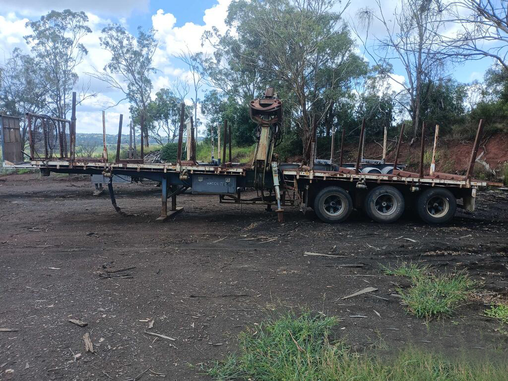 Haulmark tri-axle skel trailer with aftermarket log grab crane (blue mod plate), 2 toolboxes, airbag suspension, 8 rows of stansions (4x2.0m bays with crane in the middle). Fairly new tyres. Machinery passed but unregistered.
