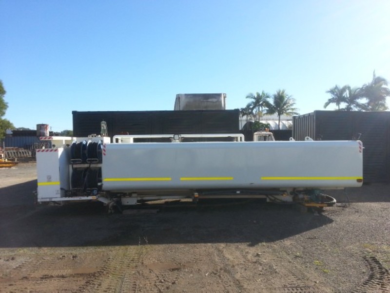 MARLIN FUEL AND LUBE SERVICE BODY, 13,000 steel Marlin fuel tank, hydraulic driven V25 EBSRAY diesel pump, Hi-Flow and Low-Flow nozzle's with retractable hose reels and meters, 5 oil tanks and 1 coolant tank with pumps and retractable hose reels, oval digital read out meters, 4 oil tanks with pumps & retractable hose reels, air operated grease gun with retractable hose reel, retractable air hose reel, Wiggins quick fill, work lights.