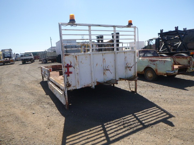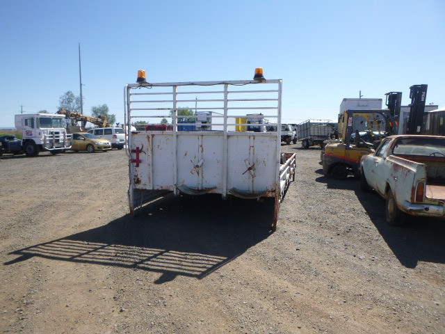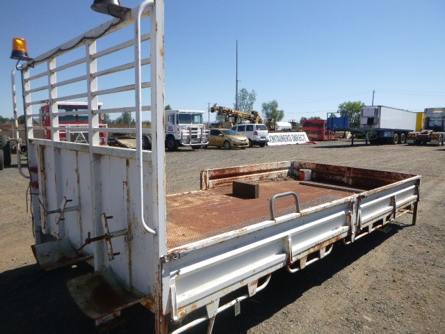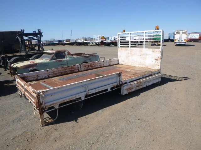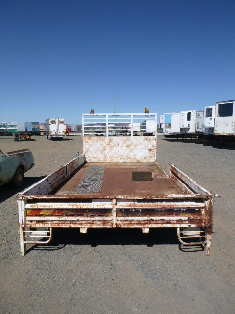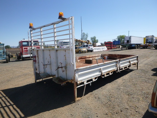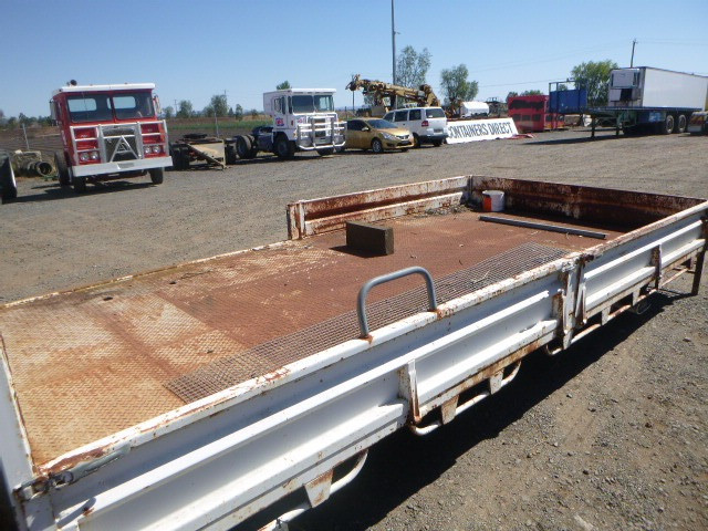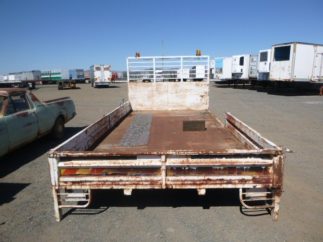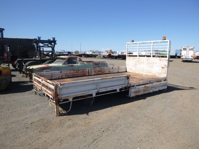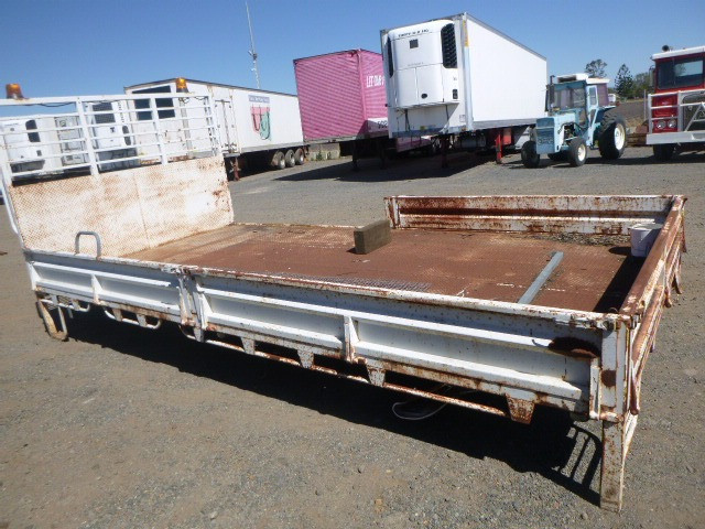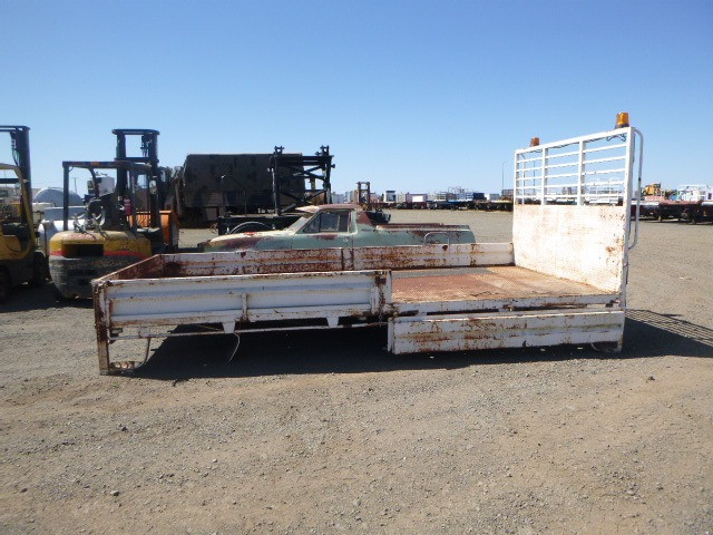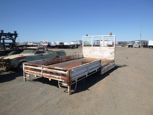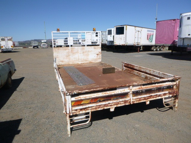Stock # 3033 - Unknown Tray body, 4.8m Length, Steel Checker Plate Floor. Vendor asking $1200. Located Western Traders Yard, Forest Hill Qld.